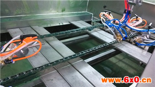 1. 功能:通过化学方能:对于一些不能悬挂的塑胶产品,可以采用输送带将其输送到各个工位。输送带的速度可以根据生产工艺要求进行调节。