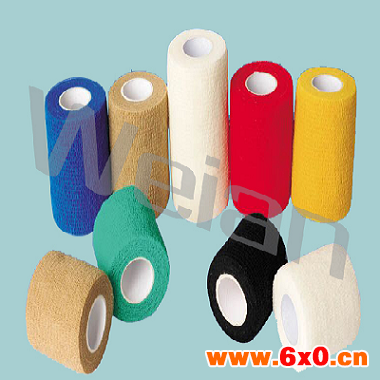产品描述:产品是由经软化处理透气无纺布.淋涂进口乳胶丝,涂低敏丙烯酸酯粘胶卷绕而成。弹力自粘,用于对创面或肢体的加压包扎,可提供持久稳定的束缚力,以起到包扎、固定作用。
