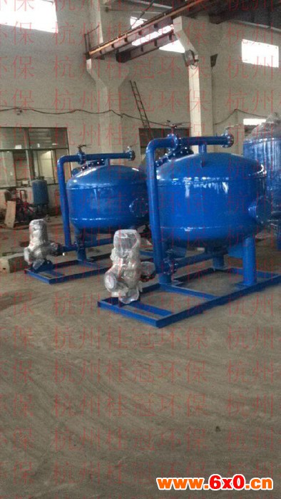 三通反洗阀同时逆流入这个过滤器中。在这个逆流过程中,被反洗的过滤单元的填料层在水流的冲击下被冲起,杂质则通过一个三通的反洗口被排出。在过滤系统中,特殊设计的集水器使填料层在反洗状态时形成内环流,填料之间互相搓洗**大限度地提高反冲洗效率,减少所需的反洗水,同时反洗时不跑沙。当反洗结束时,阀门又回复到过滤状态,下一个过滤器则准备进入反洗状态。 杭州桂冠环保科技有限公司专业生产盘式过滤器,自清洗过滤器,全自动过滤器,旁滤器,浅层砂过滤器,疏水自动加压器,冷凝水回收装置,旁流水处理器,全程综合水处理器,电子除垢仪,叠片过滤器,旋流除砂器,真空脱气机,定压补水脱气机组。 高效砂滤系统的特点 - 相对传统介质过滤器,改进后的介质高度为40 CM - 占地面积小 - 系统全自动运行,无需专人看守 - 反冲洗节水,系统可进行本源反清洗,无需外接水源 - 系统集成化程度高,无需其他辅助设备,从而节省了泵、管道、阀门等费用 高效砂滤系统的主要参数 - 单台处理流量:1-90 m3/h**大工作压力:8 bar - 建议工作压力:3.5 bar - 系统清洁时的压力损失:0.2 bar - 介质高度:40 CM - 反清洗耗水量:小于系统处理水量的2% - 自清洗控制方式:压差、时间及手动 - 电控方式:单相交流220V - 清洗水源:无需外部水源,完全依靠自身的水压 - 安装方式:根据现场的工况,可采用对每个过滤单元进行上下叠加或平行摆放、多列并联等安装方式。 4. 高效砂滤系统描述 - 滤罐的材质为碳钢,罐体内外涂有厚度不小于130微米的高强度聚酯保护层及环氧树脂层。结合流体化设计,保证涂层在过滤及清洗过程中不会磨损,因此,在获得**过滤效果的同时,罐体使用寿命长,而且避免了罐体锈蚀导致的二次堵塞。 - 罐体内为双层结构,上层为砂床和杂质存留空间,下层为清水流转空间 - 布水器使未过滤水流即使在高流量的情况下亦能均匀流过填料层,并在填料层上维持一平整水面 - 独特的72个蘑菇状压差补偿过滤集水器,使系统在过滤状态下各部分水压平衡,过滤流速高,效率高;在反洗状态下,形成内环流,在反冲洗过程中,集水器形成涡流,保证污物被完全地反冲出过滤罐且不跑沙 - 全自动控制过滤系统采用模块化设计,根据流量、占地面积的不同,可灵活组合 - 可采用时间,压差等多种方式自动启动反冲洗,系统内各过滤器依次进行反冲洗,其他过滤器仍然在过滤,以保证系统在反冲洗过程中不中断供水 - 反冲效率高,反冲时间短,反冲洗时节水(反冲用水量是传统沙滤器的30%左右,耗水量小于总处理水量的2%) - 系统重量轻,不需要特别的地基,一般