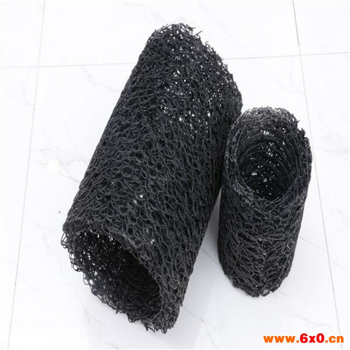 塑料盲沟是由塑料芯体外包裹滤布组式。塑料芯体是以热可塑性合成树脂为主要原料,经过改性,在热熔状态下,通过喷咀挤压出细的塑料丝条,再通过成型装置将挤出的塑料丝在结点上熔接,形成三维立体网状结构。