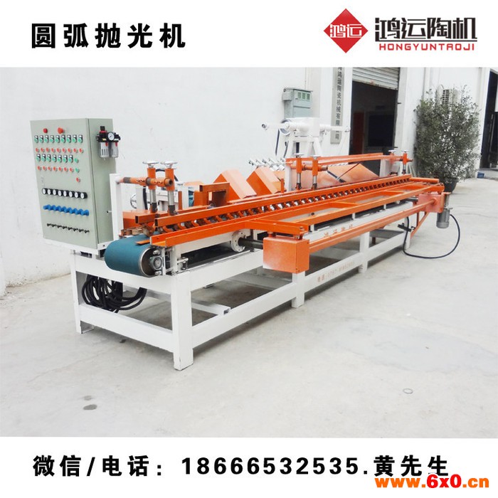 上图为我厂自主研制的新型圆弧抛光机,该机全自动运行,功能齐全.基础功能有:圆弧磨边、开防滑槽、45度倒角抛光、修边、后倒角,另外可增加:V型槽、L型槽、法国边、鸭嘴边等多种工艺,机器主要针对加工瓷砖/大理石等,全国独家首创超强度低振技术,利用物理力学原理设计避振辅助力,增强稳定性,并且为方便客户操作机器,我们设计时减少许多繁杂步骤,全自动操作话优化机身,使得操作更加简便,易掌握,噪音少,特别适用于瓷砖加工厂、装饰工程、石材大理石磨边倒角陶瓷加工行业,房地产项目开发,直接建筑工地上使用,更加简便快捷。本厂郑重保证:凡圆弧抛光机类产品加工效果,不崩瓷、不掉角、精度高、光泽度90%以上。我公司热烈欢迎各位新老客户到厂考察、试机满意后再购买。