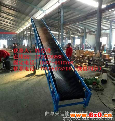7、移动式皮带输送机的输送带还可以根据用户需要换成具有耐酸碱、耐腐蚀、耐磨等特性,方便化工、医药等行业使用。由于其操作方便、输送效率高等特点被广泛使用,已经成为粮库、矿山、工厂等行业所欢迎的高效输送设备。