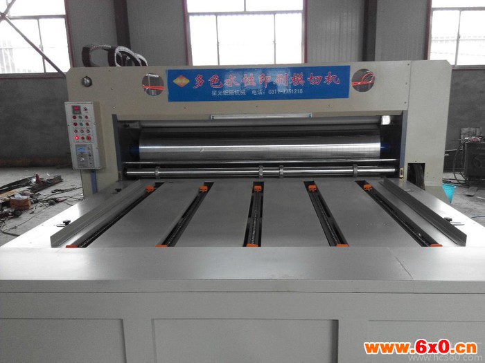 新型多色水墨印刷(开槽)机为大直径版辊(φ700mm),集印刷与开槽一体的组合机械,操作方便,质量稳定,手工链条送料方式,适应性强,能够克服纸板缺陷和不规矩纸板的送入,是大型纸箱加工的理想设备,其幅宽可达3.6m.