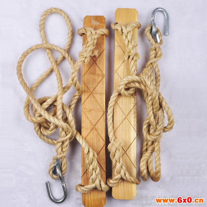 3、绳两端系结在踏板两头的扎结槽内,绳顶端系结铁挂钩,绳的长度应与使用者的身材相适应。