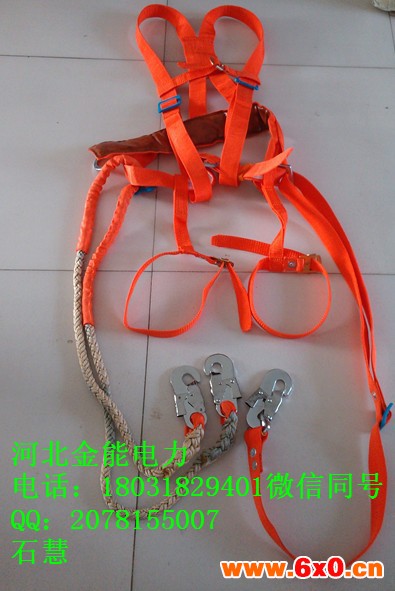 石家庄金能电力设备有限公司专业生产单保险安全带(普通、高强度)、双保险安全带(普通、高强度)、上背带安全带(普通、高强度)、高空安全带(普通、高强度)、东北穿绳安全带(3.5米绳,4米绳),双背安全带价格不等!