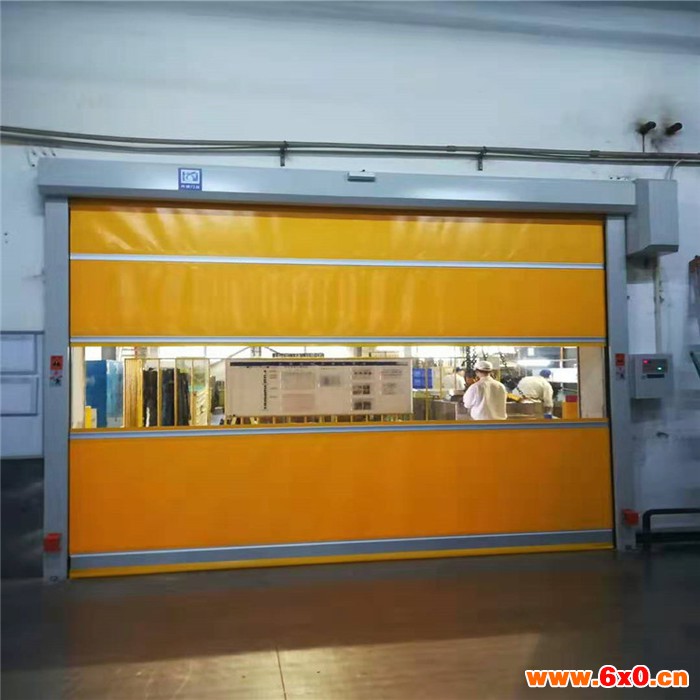 ??门 帘:门帘为0.8-1.0mm厚法国希运产高密度聚酯纤维基布,快速卷帘门,颜色黄色,橙色,蓝色,河北廊坊快速卷帘门,白色,河北快速卷帘门,灰色,半透明黄等。中间一条整体式透视窗,高度400-600-宽800-2100(约),透视窗为全透明1.5mm厚PVC软片。一般配以铝合加强金,风压大可使内用金属管堆积门使抗风强度可达6-8级(特殊抗风要求可定做)。底端装有加重隔气布,它可与各种不平坦地面紧密结合。