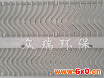 屋脊除雾器在吸收塔内,由上下二级屋脊式除雾器及冲洗水系组成。经过净化处理后的烟气,在流经两级卧式屋脊式除雾器后,其所携带的浆液微滴被除去。从烟气中分离出来的小液滴慢慢凝聚成较大的液滴,然后沿屋脊除雾器叶片往下滑落至浆液池。在一 级除雾器的上、下部及二级除雾器的下部,各有一组带喷嘴的集箱。集箱内的除雾器清洗水经喷嘴依次冲洗除雾器中沉积的固体颗粒。经洗涤和净化后的烟气流出吸收塔,终通过烟气换热器和净烟道排入烟囱。