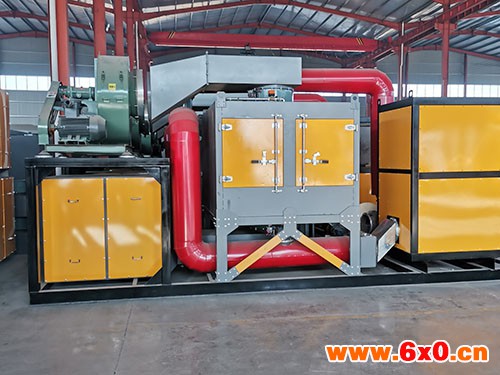 催化燃烧一体机采用RCO工艺净化废气,可同时除掉多种污染物,具有工艺流程简单、设备紧凑、运行稳定等优点;装置主要由热交换器、燃烧室、催化反应器、热回收系统和净化烟气的排放烟囱等部分而组成,其净化原理是:未净化气体在进入燃烧室以前,先经过热交换器被预热后送至到燃烧室,在燃烧室内达到所要求的反应温度,氧化反应在催化反应器中进行,净化后烟气经热交换器释放出部分热量,再由高空烟囱排入大气当中。
