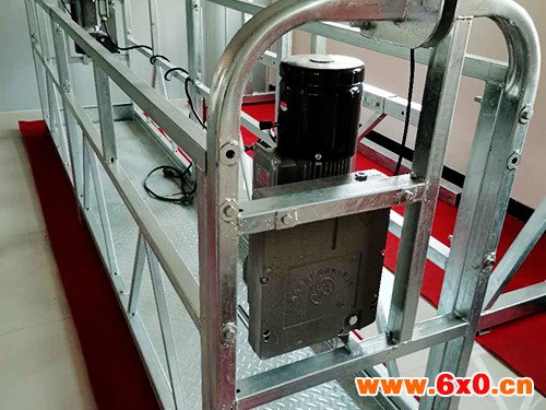 3、提升机:根据吊篮额定载重不同而配备不同型提升机,提升机安装于悬吊平台两端的提升机安装架中。提升机是驱动悬吊平台上、下运动的动力装置。