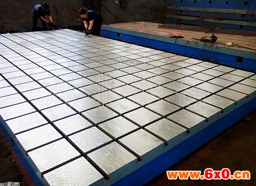 横竖槽平台主要用来固定工件,是钳工工人用来调试设备,装配设备,维修设备的基础工作平台。表面处理:工作面采用刮研工艺,用涂色法进行检验,保证了平面精度。